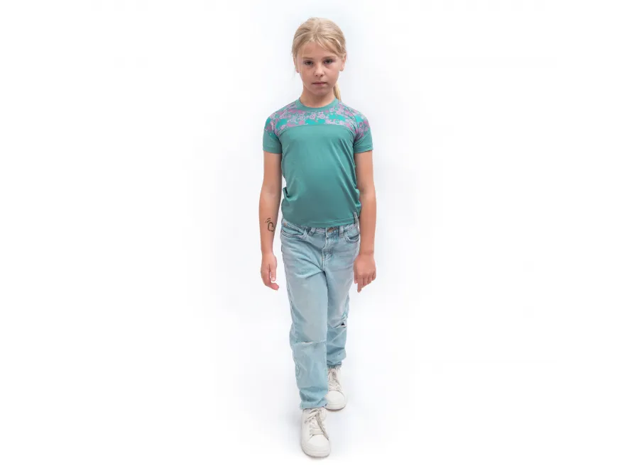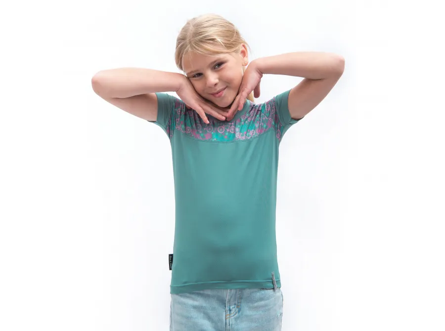 Model: COOLMAX IMPRESS dětské UV triko kr.rukáv mint/purple bikes