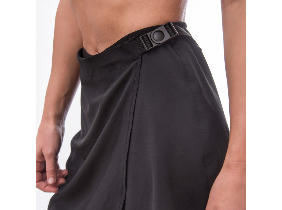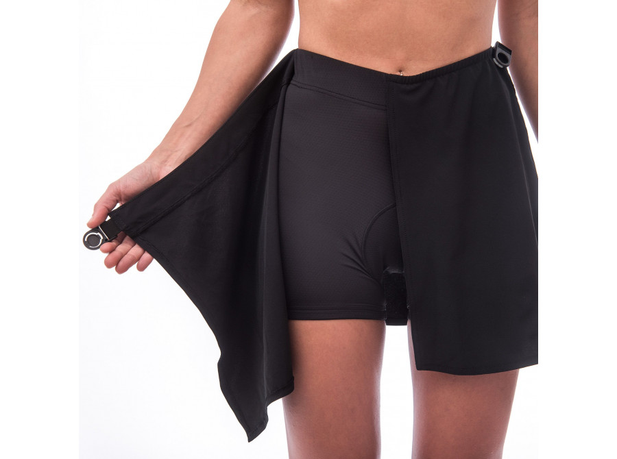 Cyklistická sukně s všitými elastickými cyklokalhotami. Sukně je vyrobena z pevné tkaniny odolné proti oděrkám a využívá rychlé zapínání v pase pomocí plastové spony. Vnitřní kalhoty jsou pevně spojeny se sukní a obsahují T.M.F. cyklovložku pro větší pohodlí. Superrychlý odvod vlhkosti od pokožky a ochrana UPF25 proti UV záření. Ionty stříbra zamezují zápachu a tvoří trvalou antibakteriální ochranu. Sukně je zdobena odolným, decentním potiskem.