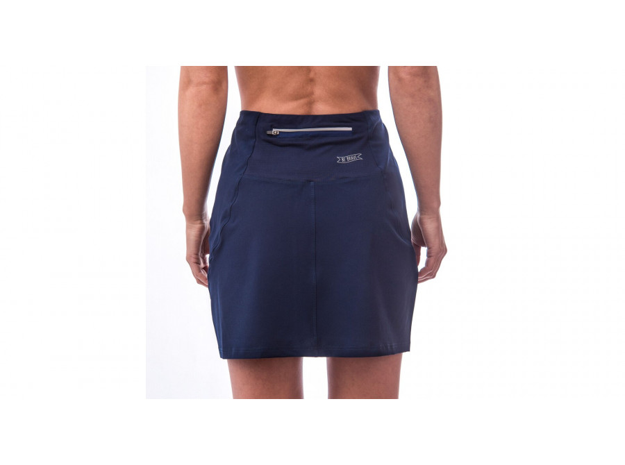 Cyklistická sukně bez cyklovložky vyrobená z lehkého a prodyšného materiálu, který zaručuje maximální volnost pohybu. Superrychlý odvod vlhkosti od pokožky a ochrana UPF25 proti UV záření. Ionty stříbra zamezují zápachu a tvoří trvalou antibakteriální ochranu. Sukně je zdobena odolným, decentním potiskem. Potěší zadní kapsa na zip, kam se pohodlně vejdou nezbytné drobnosti.