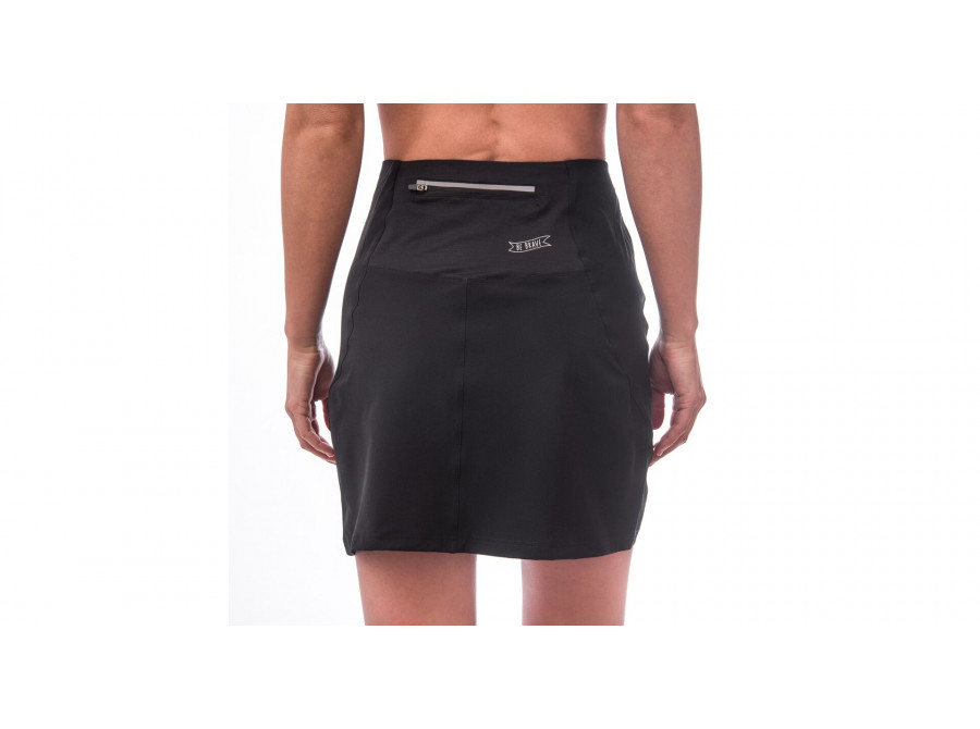 Cyklistická sukně bez cyklovložky vyrobená z lehkého a prodyšného materiálu, který zaručuje maximální volnost pohybu. Superrychlý odvod vlhkosti od pokožky a ochrana UPF25 proti UV záření. Ionty stříbra zamezují zápachu a tvoří trvalou antibakteriální ochranu. Sukně je zdobena odolným, decentním potiskem. Potěší zadní kapsa na zip, kam se pohodlně vejdou nezbytné drobnosti.