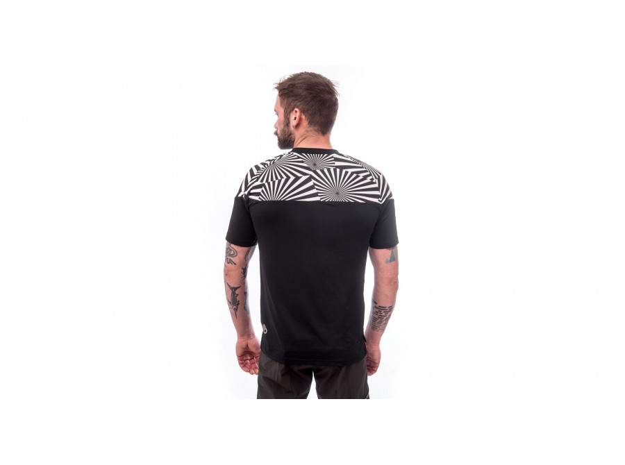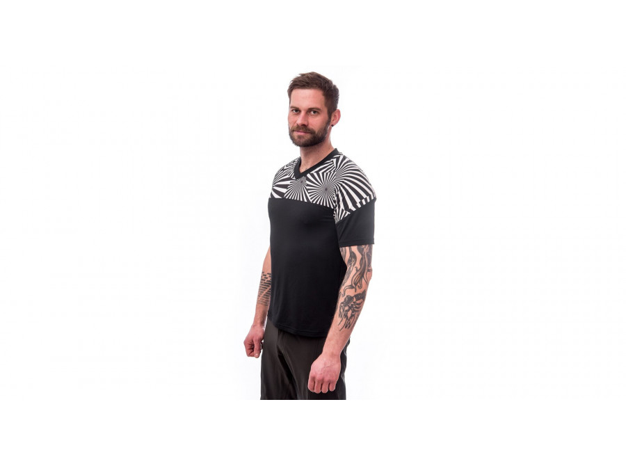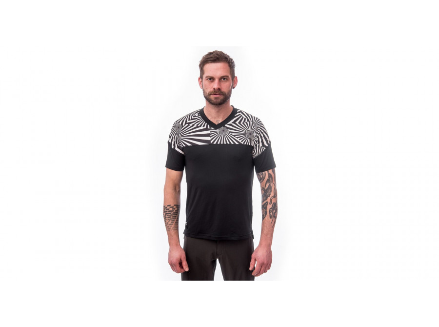 Cyklistický dres s barevnými motivy. Skvělé funkční vlastnosti díky použitému materiálu s UV ochranou UPF25. Dres má volný střih s raglánovými rukávy. Postranní kapsa na zip pro uložení drobností.
