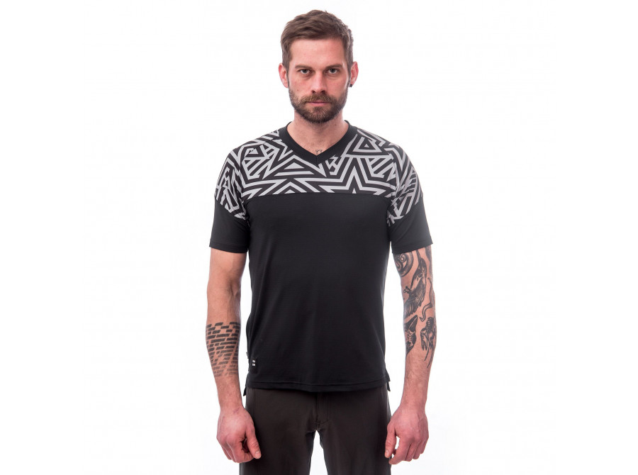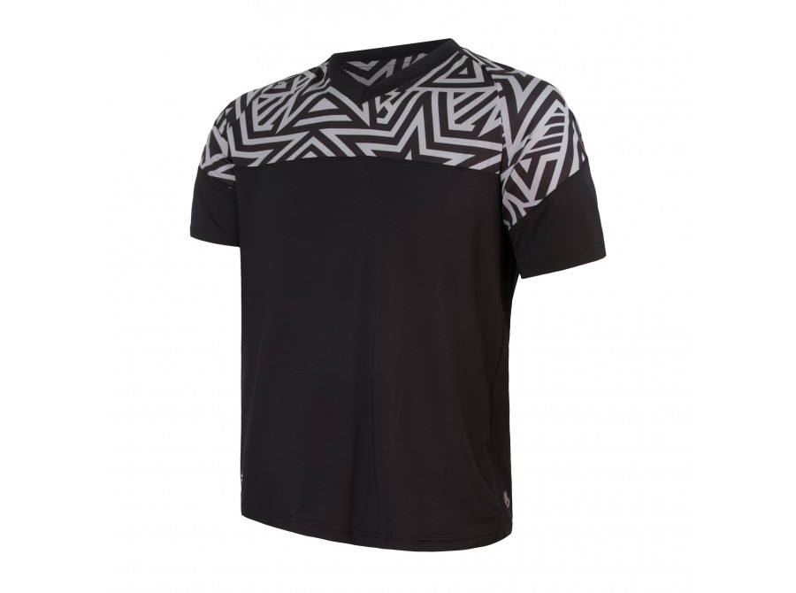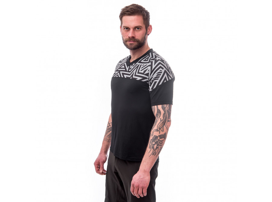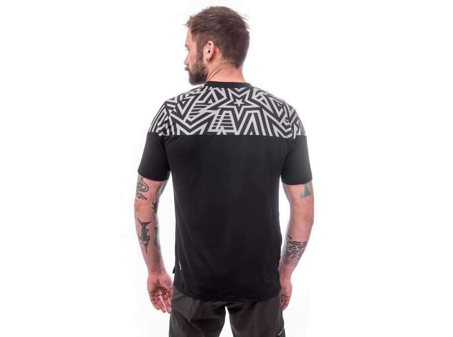 Cyklistický dres s barevnými motivy. Skvělé funkční vlastnosti díky použitému materiálu s UV ochranou UPF25. Dres má volný střih s raglánovými rukávy. Postranní kapsa na zip pro uložení drobností.
