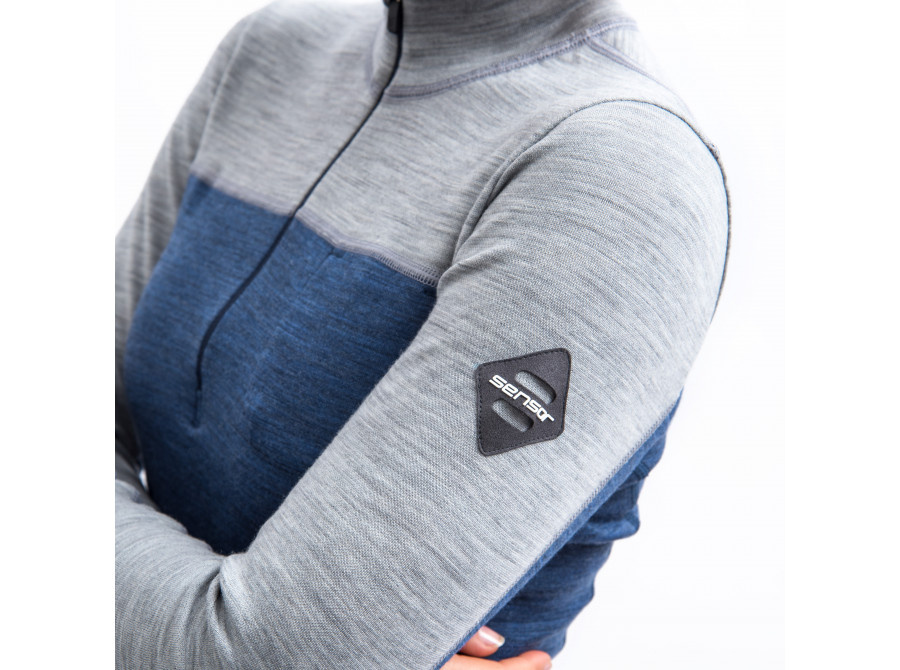 SENSOR MERINO BOLD dámské triko dl.rukáv zip cool blue/cool gray