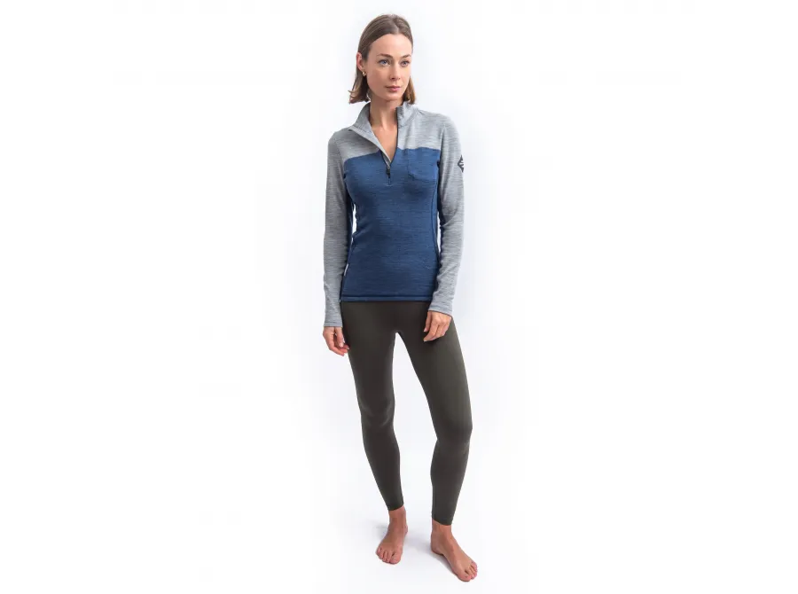 Model: MERINO BOLD dámské triko dl.rukáv zip cool blue/cool gray