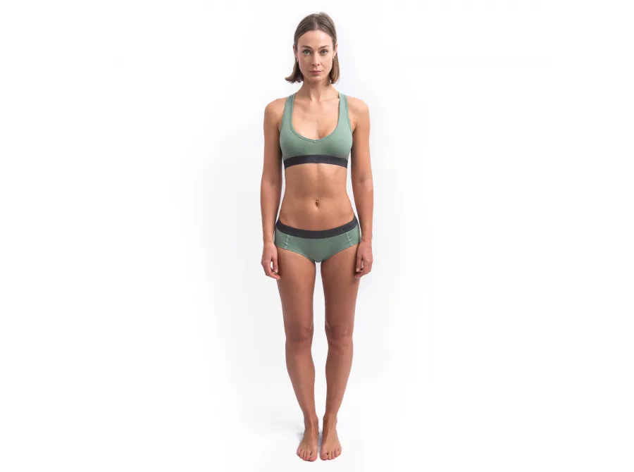 Funkční podprsenka vyrobená z úpletu unikátní konstrukce kombinující polyester na vnitřní straně a vysoce kvalitní Merino vlnu z Nového Zélandu. Hlavní výhodou této kombinace je to, že polyester urychluje transport potu do vnější vlněné vrstvy, která má jedinečný antiodor zabraňující tvoření pachů a navíc má skvělou termoregulační funkci. Vnitřní tenká polyesterová vrstva eliminuje "kousání" vlny u lidí, kteří jsou na tento jev citliví. Prádlo je ideální pro sportování v extrémních klimatických podmínkách: vysokohorská turistika, skialpinismus, horolezectví.
