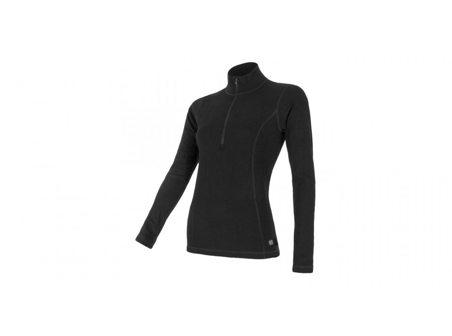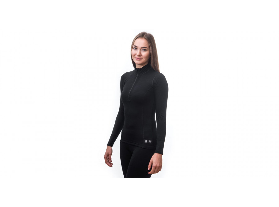 SENSOR MERINO DF dámské triko dl.rukáv zip černá