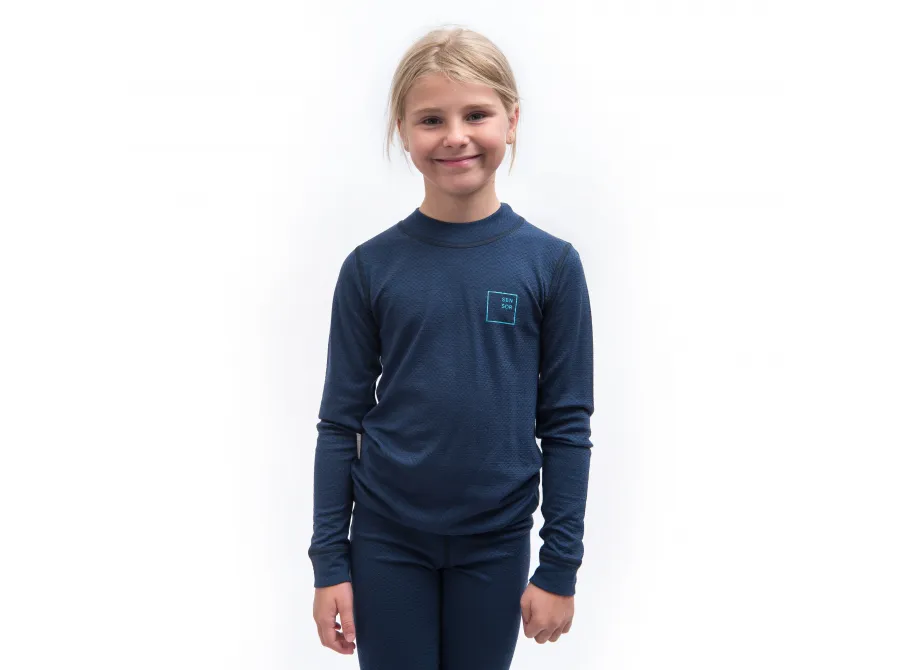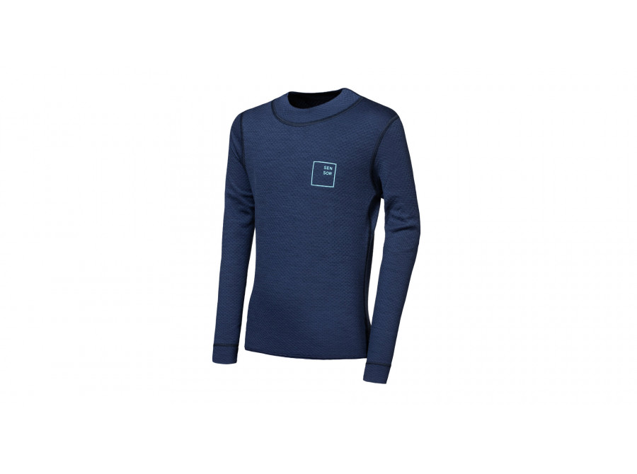 SENSOR MERINO DF LOGO UP juniorské triko dl.rukáv deep blue