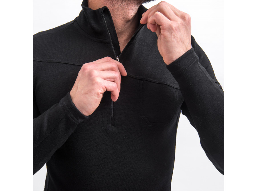 Hřejivá funkční mikina vysoké gramáže z kvalitní merino vlny a polyamidového hedvábí. Říká se, že nahoře nejvíc fouká. Přesně proto jsme vyvinuli Merino Extreme UP. Dvouvrstvý úplet je dokonalým parťákem pro každý vrcholový výkon. Vysoký obsah Merina perfektně zahřeje na provozní teplotu a následně se postará také o precizní odvod vlhkosti. Vlna s lanolinem navíc vyniká antibakteriálními vlastnostmi a samočisticím efektem. Oblečení můžete tedy propotit klidně skrz naskrz a stejně by vás podle zápachu nevyčmuchal ani špičkově vycvičený policejní pes. Přidané polyamidové hedvábí pak zajistí vysokou elasticitu a pevnost.