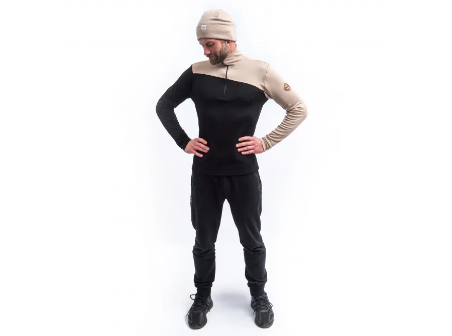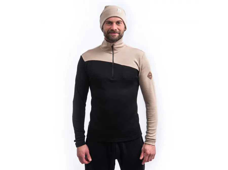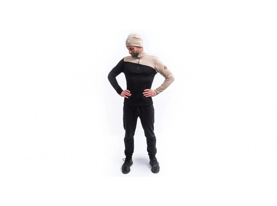 Model: MERINO EXTREME UP pánská mikina dl.rukáv zip černá/almond beige