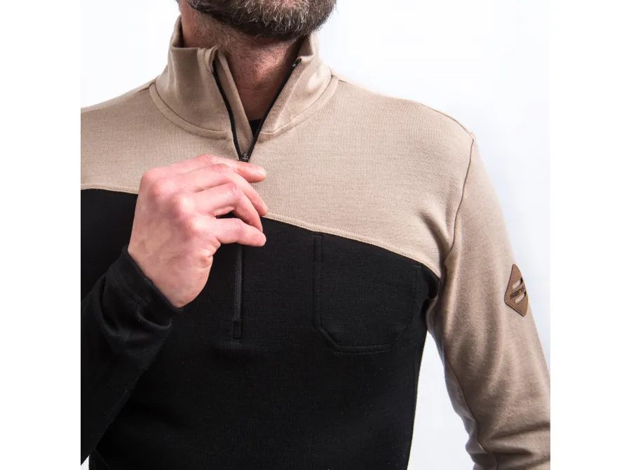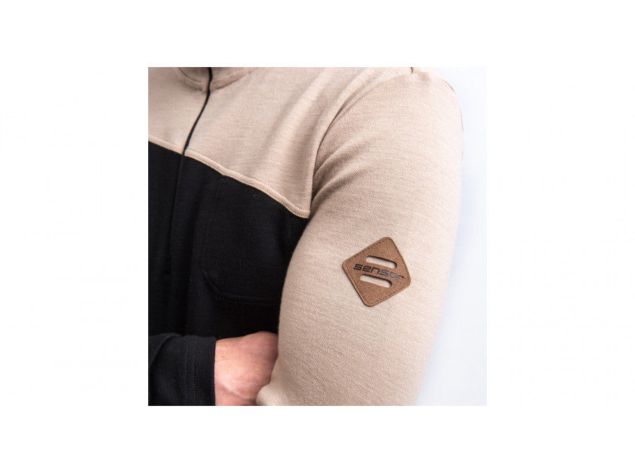 SENSOR MERINO EXTREME UP pánská mikina dl.rukáv zip černá/almond beige