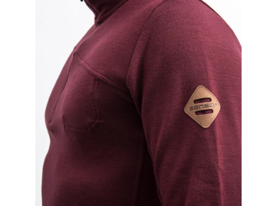 SENSOR MERINO EXTREME UP pánská mikina dl.rukáv zip port red