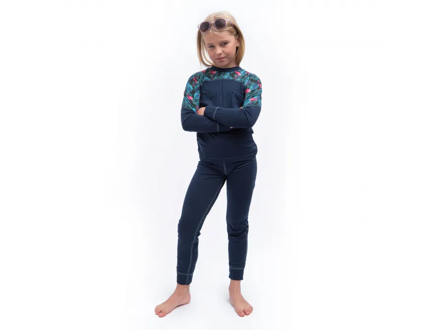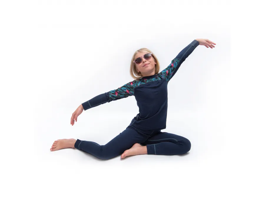 SENSOR MERINO IMPRESS SET dětský triko dl.rukáv + spodky deep blue/floral