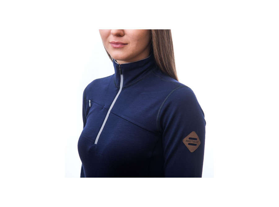 SENSOR MERINO UPPER dámská mikina krátký zip deep blue