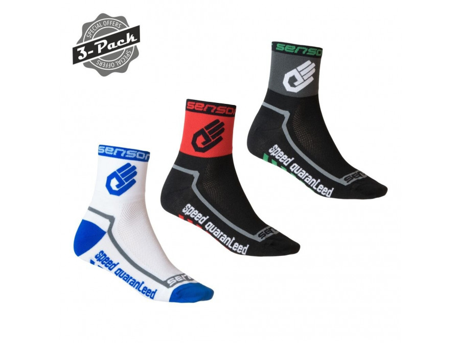 Výhodné balení tří párů lehkých nižších ponožek s dvouvrstvým nápletem. Nárt je síťovaný pro snadnější ventilaci vlhkosti. Pata a špička je speciálním tkaním zesílena na vyšší odolnost proti opotřebení. Ideální ponožky pro cyklistiku.