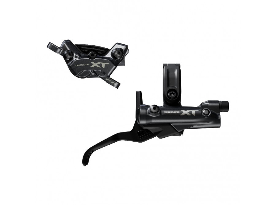 Hydraulická kotoučová brzda Deore XT M8220. Skládá se z páky M8200 a třmenu M8220 (4-pístkový) a hadice SMBH90. Brzdy jsou naplněny minerálním olejem s nízkou viskozitou a odvzdušněné. Objímka páky kompatibilní pro montáž řazení
