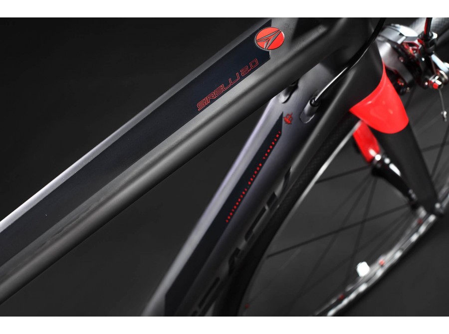 The Sirelli is a premium carbon all round road bike range with a penchant for climbing. Tubing shapes and overall design maximise the stiffness-to-weight ratio, ensuring that all your energy and control move the road bike intuitively. Compact geometry with different fork offsets for varying sizes, ensures that the ride up and down hills is responsive, agile, stable and direct. A minimalist design, using carbon properties to their fullest to enhance the riding experience.