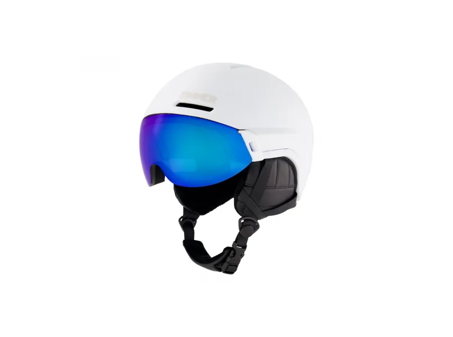 Helma SINNER MONTBLANC VISOR nabízí dokonalou kombinaci ochrany, pohodlí a stylu – díky integrovanému hledí chrání nejen hlavu, ale i oči, a přitom zajišťuje maximální volnost pohybu. Součástí je zorník s modrým zrcadlovým povrchem v kategorii 2, který poskytuje 100% UV ochranu a je ideální pro proměnlivé podmínky od lehce zatažené oblohy až po chvíle se sluncem. Široké zorné pole ocení i nositelé dioptrických brýlí, které se pod hledí pohodlně vejdou.