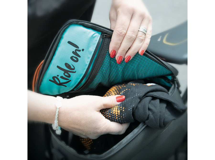 Už žádný chaos ve vaší brašně! Přihrádka vzadu, vnitřní přepážka a síťovaná přihrádka v horní části brašny vytvářejí pořádek a umožňují rychlý přístup. Vršek lze plně otevřít pomocí zipu Easyzip. Dvojitá síťovaná kapsa pojme další drobnosti. Reflexní poutka jsou připevněna na přední a zadní straně pro lepší viditelnost v silničním provozu. Robustní rukojeť a ramenní popruh usnadňují přepravu brašny, i když kolo nepoužíváte. Rozsáhlou výbavu doplňuje praktický nepromokavý obal.