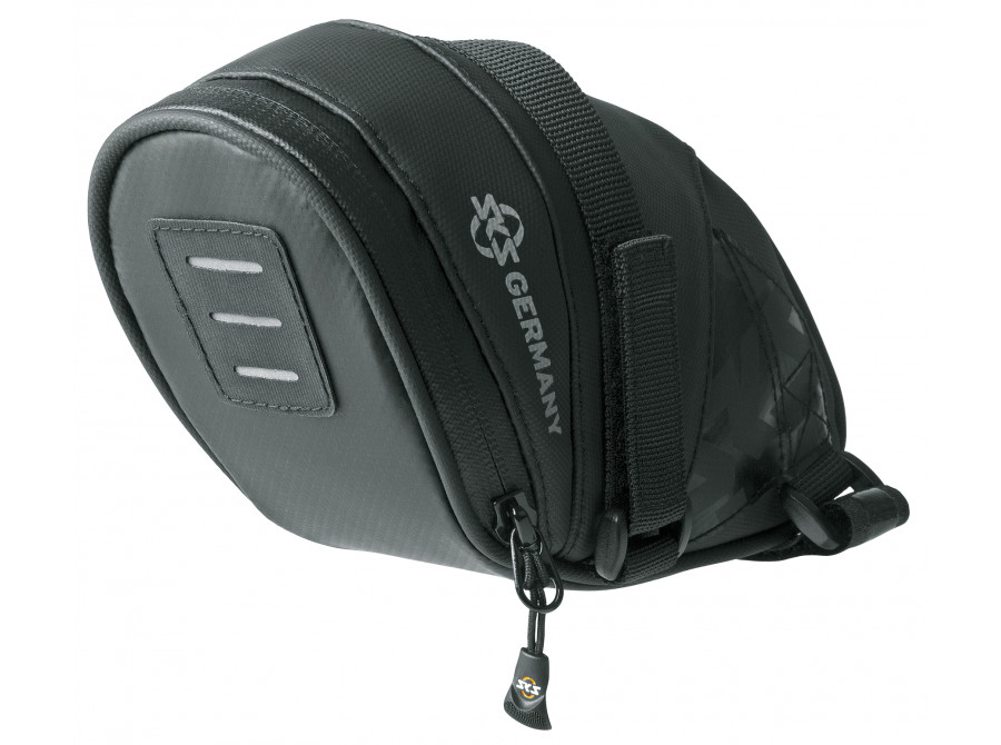 Lehká, funkční a aerodynamická cyklo brašna SKS Explorer Straps 800 pod sedlo je vyrobená z voděodolného pogumovaného nylonu. Poskytuje dostatek prostoru pro nářadí, náhradní duši a další drobnosti. Reflexní prvky zvyšují bezpečnost při jízdě za tmy a jistě oceníte i odolný ergonomický zip a dělené vnitřní kapsy s oranžovým polstrováním.