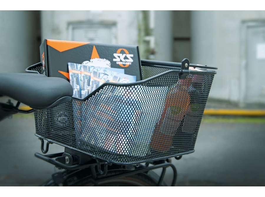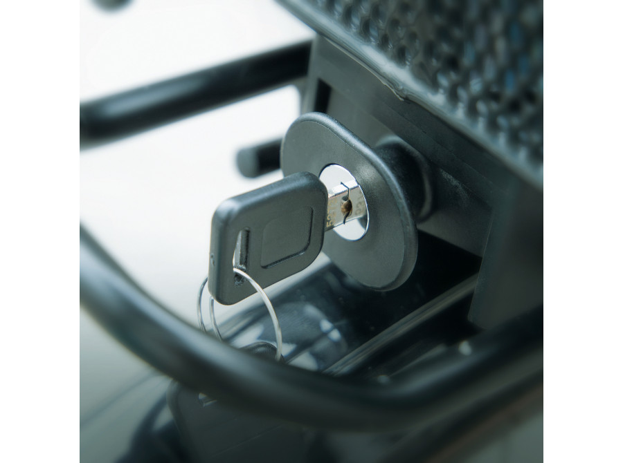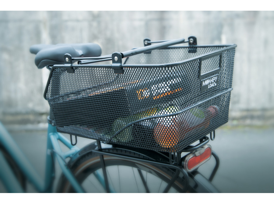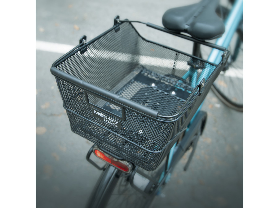 MLT BASKET je zajištěn adaptérovou deskou umístěnou na spodní straně. Během několika sekund se košík zacvakne na všechny nosiče zavazadel se systémem MonkeyLoad-T. Tlumící vrstva pod deskou zajišťuje, že koš na kolo bezpečně sedí na nosiči zavazadel a může být také zajištěn zámkem. Zajišťovací mechanismus se uvolní vytažením dopředu. Košík pak lze snadno přenášet pomocí skládacích, polstrovaných madel.