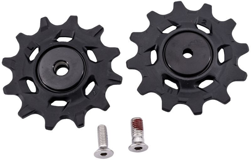 Kladky pro přehazovačku RIVAL XPLR ETAP AXS, ocelová pochormova CROME STEEL BEARING (INCLUDES 12T UPPER AND 12T LOWER PULLEYS, 12.9MM AND 12.5MM STEEL PULLEY SCREWS)
