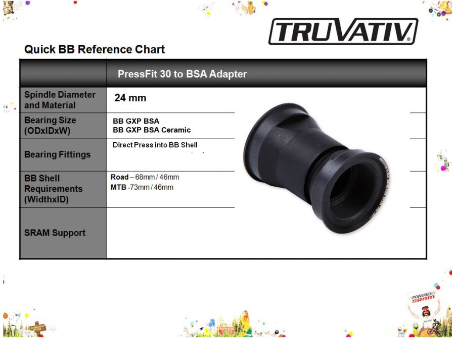 Model: PressFit 30 na BSA adapter, 68 or 73mm