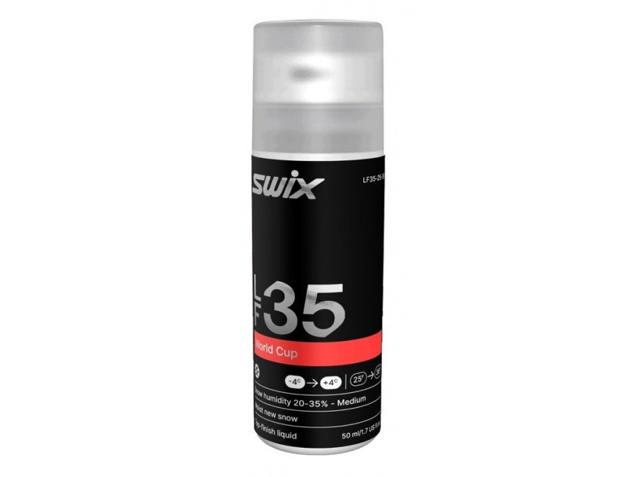 Tekutý vrchní vosk World Cup LF35 nabízí vynikající skluz v podmínkách nového, jemného sněhu po obou stranách bodu mrazu.
