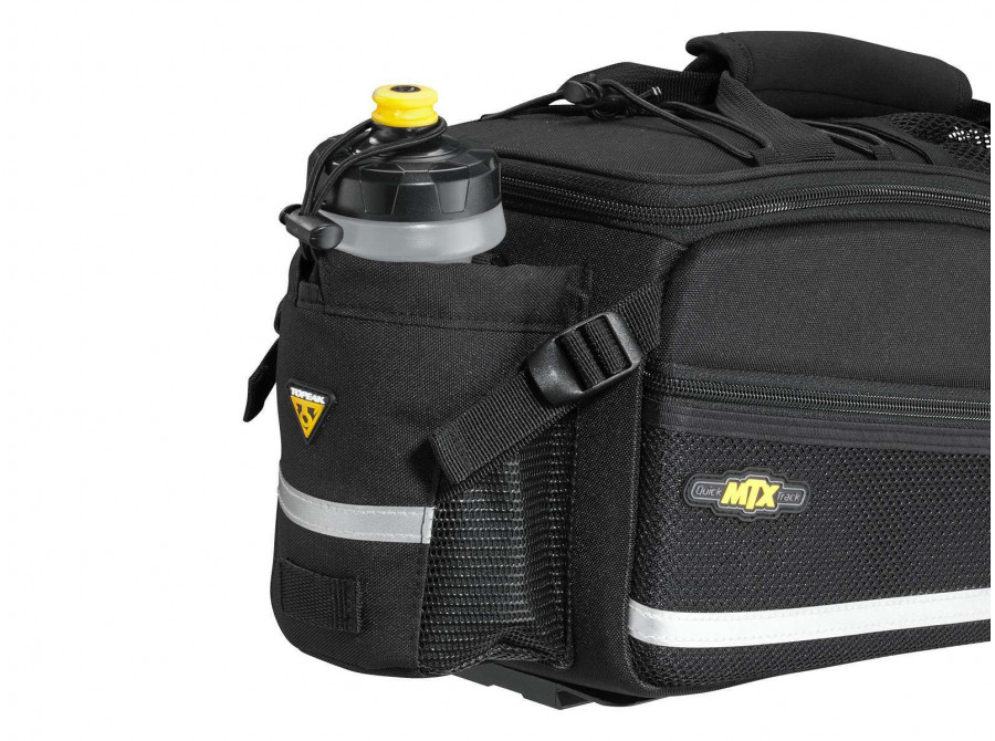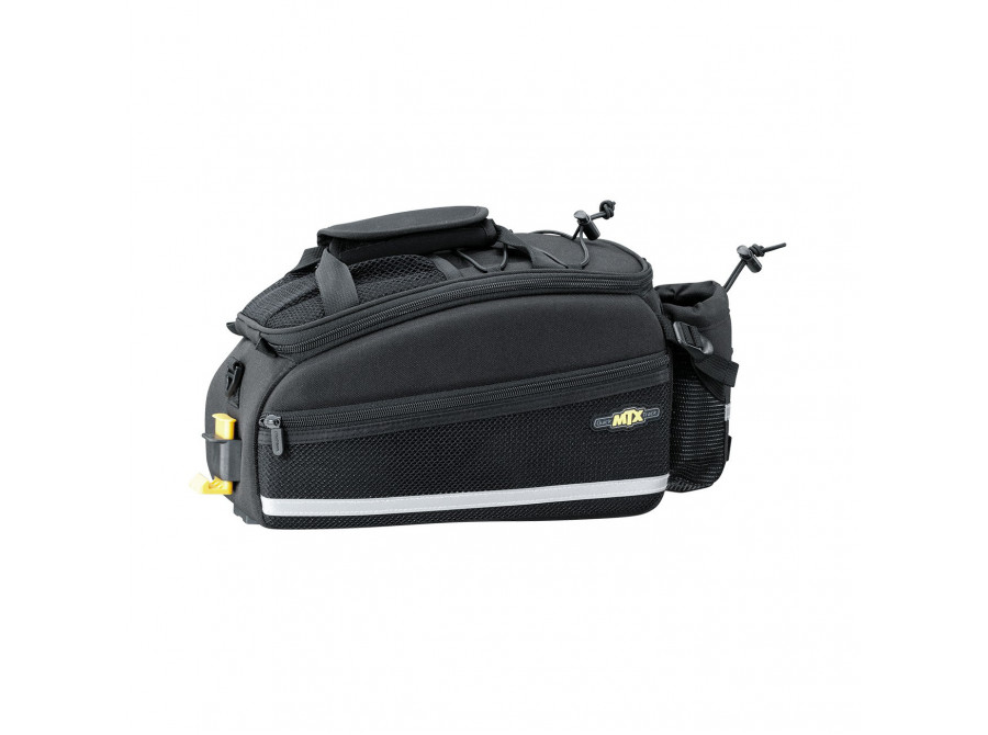 Brašna na zadní nosič se střední kapacitou. Prostor je dělen na jednu hlavní část a dvě boční kapsy na zip. Brašna kombinuje tvarově stálý materiál s pružnou a odolnou textilií Denier 600. Brašna je vhodná pro všechny nosiče Topeak se systémem MTX QuickTrack™.