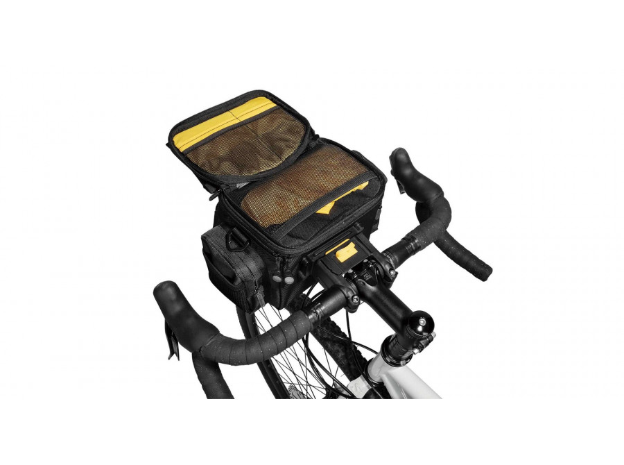 Vychytaná taška na řídítka s upevněním QuickClick ™. Díky přiloženému ramennímu popruhu, lze tašku pohodlně využit i mimo kolo. Perfektní na výlety a dojíždění. Součástí balení je pláštěnka.