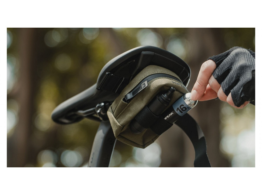 Kompaktní podsedlová brašna s popruhem na suchý zip pro přepravu duše, montpák, případně dalších drobností pro bezpečnou a jistou jízdu. Vestavěná protiskluzová tkanina zajišťuje bezpečnost při upevnění. K dispozici jsou tři velikosti a dvě barvy.