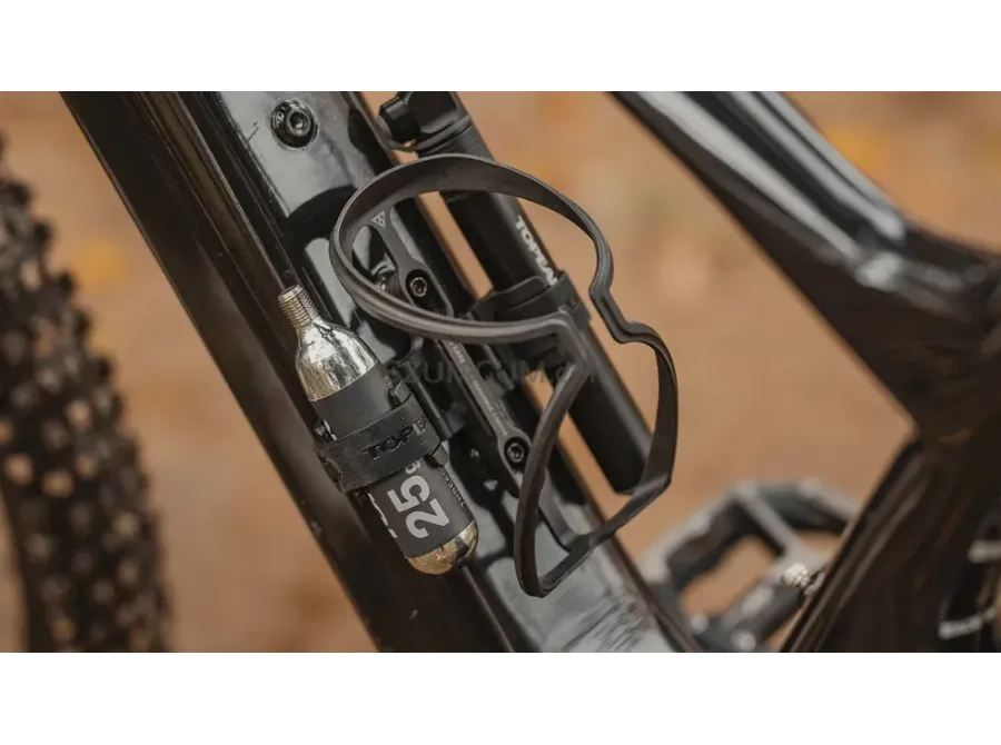 Cage Side Mount je kompatibilní s vybranými mini pumpičkami, nářadím a CO₂ bombičkami. Součástí balení jsou navíc držáky pro dvě 16g a dvě 25g CO₂ bombičky, takže máš vše připravené na případný defekt.