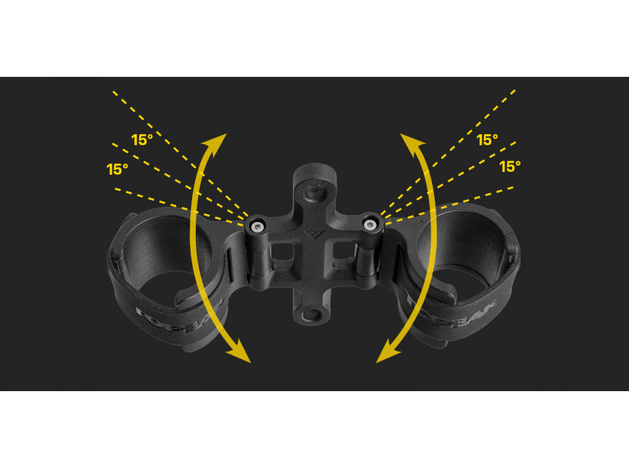 Držák nabízí nastavení úhlu v krocích po 15°, takže si jej snadno přizpůsobíš konkrétnímu rámu i typu kola. Výsledkem je čistá instalace bez kolize s rámem nebo klikami.