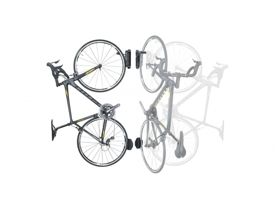 Tento elegantní držák uchytí jízdní kolo na stěnu a umožní jeho vytočení do strany, čímž dokáže ušetřit spoustu místa. Držák je kompatibilní se standardními silničními i horskými koly až do 29", nepodporuje fatbiky.