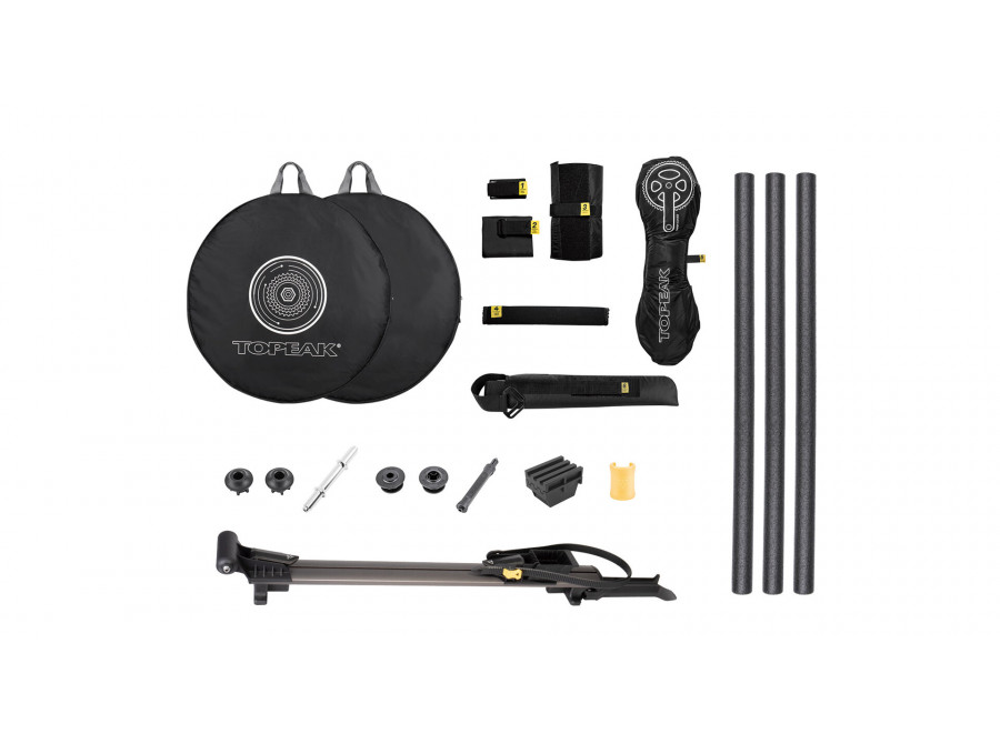 - Součástí balení: Systém pro montáž rámu, 2 tašky na kola, Kryt pohonu, Ochranné návleky a ochranné polštáře na rámové trubky a vidlice