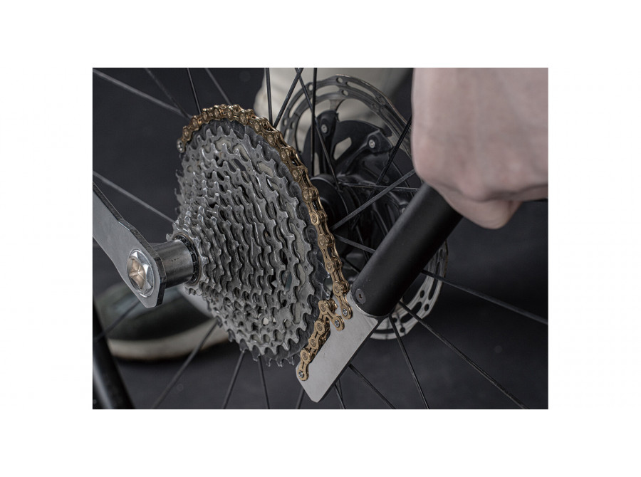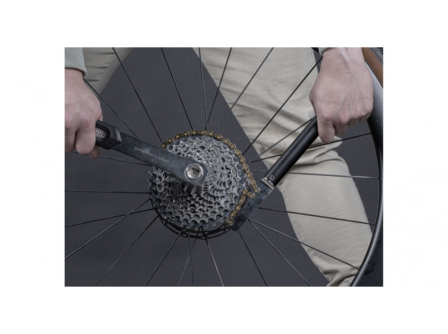 Profesionální bič na kazety (chain whip) navržený pro demontáž a montáž kazet jízdních kol.