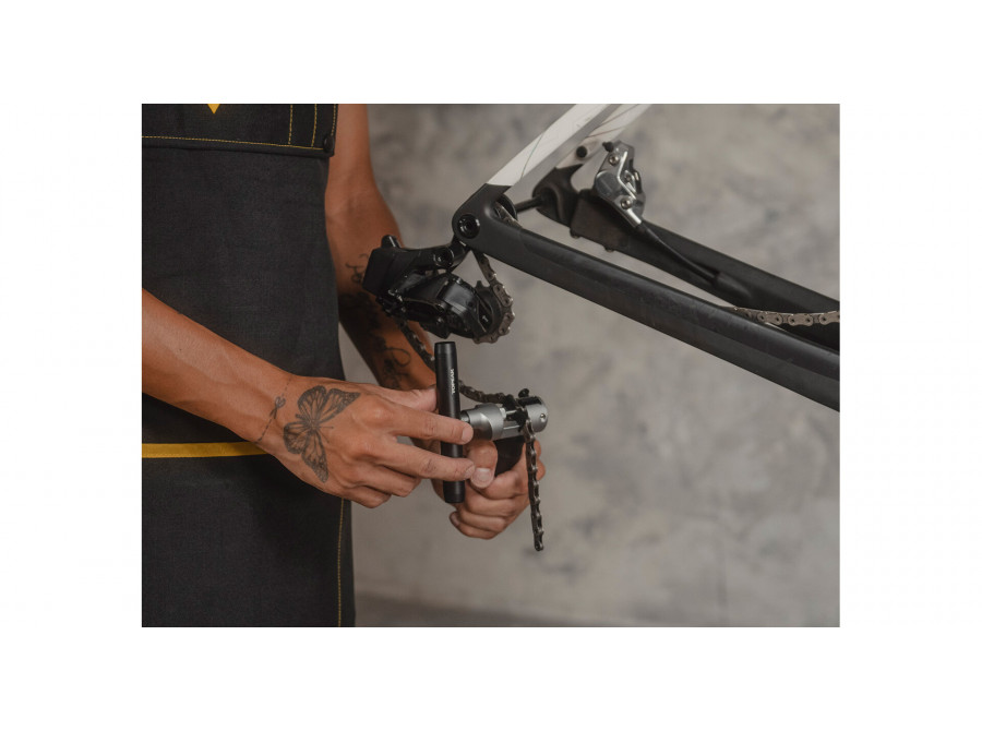 Precizně zkonstruovaný profesionální nýtovač řetězu s unikátním designem pro rychlé zarovnání řetězu.