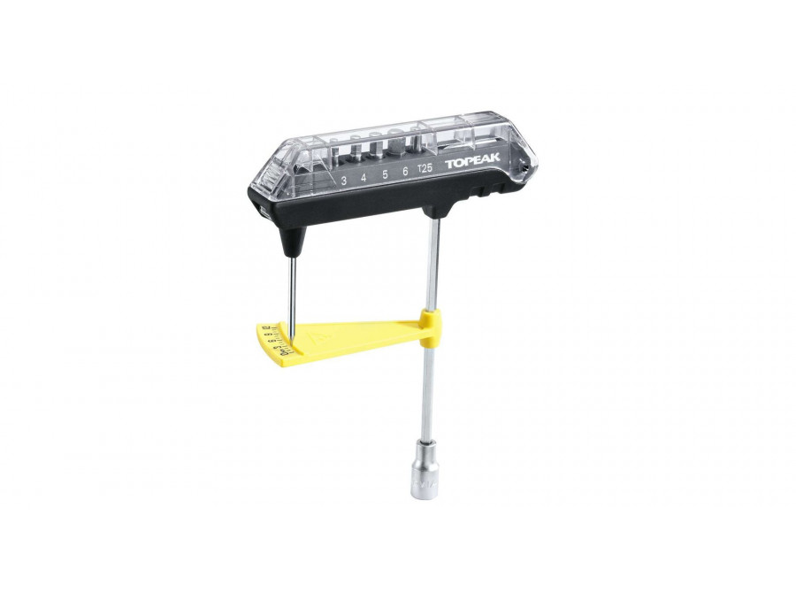 Sada momentového klíče a bitů. Snadné použití momentového klíče umožňuje správné dotažení šroubů. Ergonomická rukojeť pro pohodlnou práci.