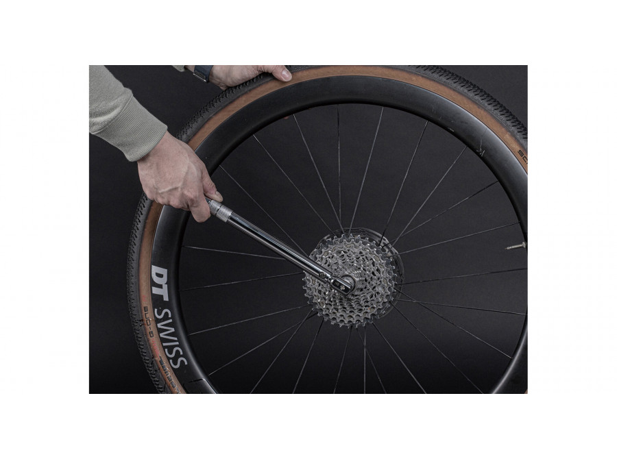- Přesný utahovací moment: Nástroj je přesně zkonstruován tak, aby po dotažení na 40 Nm automaticky "přeskočil" a zabránil tak přetažení. Tím zaručuje bezpečné uchycení kazety a ochranu závitů náboje.