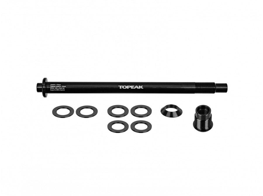 Topeak Zi:RAK Thru-Axle je speciální pevná osa určená pro použití s nosiči řady Zi:RAK na silničních a gravel kolech s koly 700C. Umožňuje bezpečnou a stabilní montáž nosiče bez negativního vlivu na tuhost nebo jízdní vlastnosti kola.