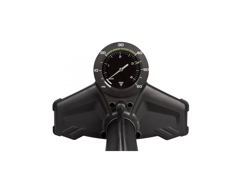Velký, 3,5" analogový manometr umístěný u základny je perfektně čitelný a umožňuje přesné nastavení tlaku až do 60 psi / 4 bar. Máš tak plnou kontrolu nad tlakem v pláštích podle terénu i stylu jízdy.