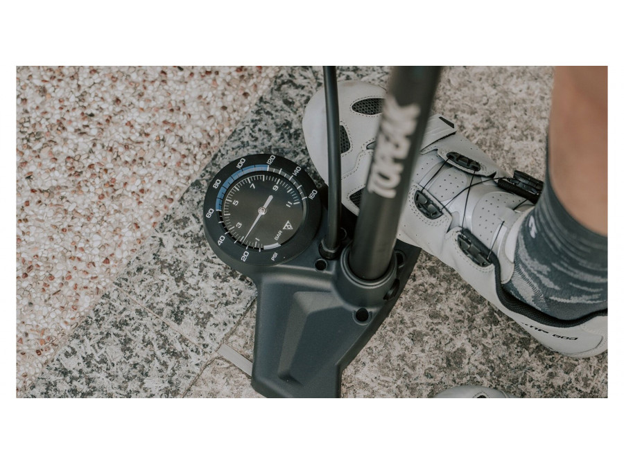 Dílenská pumpa speciálně navržená pro silniční kola a jiné pneumatiky s vysokým tlakem. Velký snadno čitelný 3,5" analogový manometr na základně pro rychlé a přesné měření tlaku v pneumatikách. Optimálně dimenzovaný ocelový zásobník bez námahy zajišťuje vysoký tlak až do 11 barů. Hlavice pumpy SmartHead® se automaticky přizpůsobí silničním a auto ventilkům. Jedná se o jednu z nejvýhodnějších dílenských pump na trhu