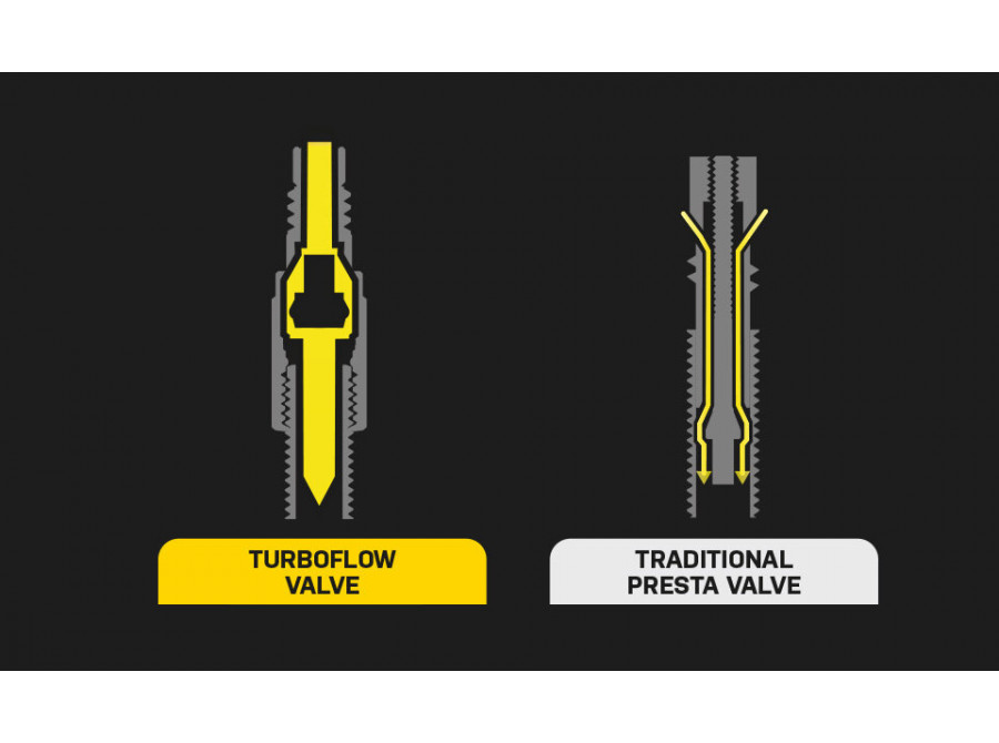 TurboFlow ventilky mají clog-free design, který zabraňuje ucpávání tmelem. To oceníš nejen při běžném dofukování, ale hlavně při snadném doplňování tmelu přímo přes ventil. Méně starostí, více času na jízdu.