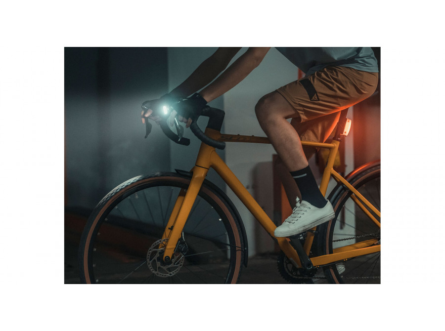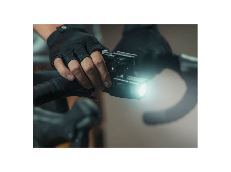 Voděodolné výkonné světlo WhiteLite® II s hmotností pouhých 24 g se snadno instaluje pomocí gumového pásku, který se jednoduše upíná kolem průměru všech řídítek.