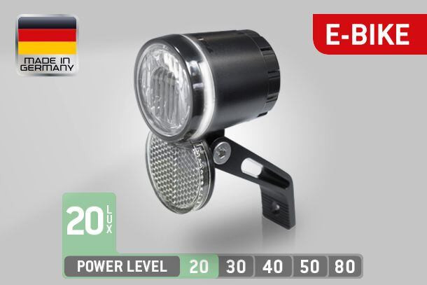 Přední světlo pro e-bika a dynama.Napětí 6-12V. Boční viditelnost.