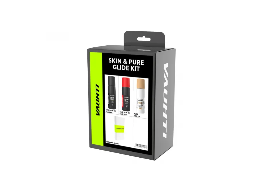 Sada Skin & Pure Glide obsahuje produkty pro čištění a údržbu skinových pásků a skluzový vosk.