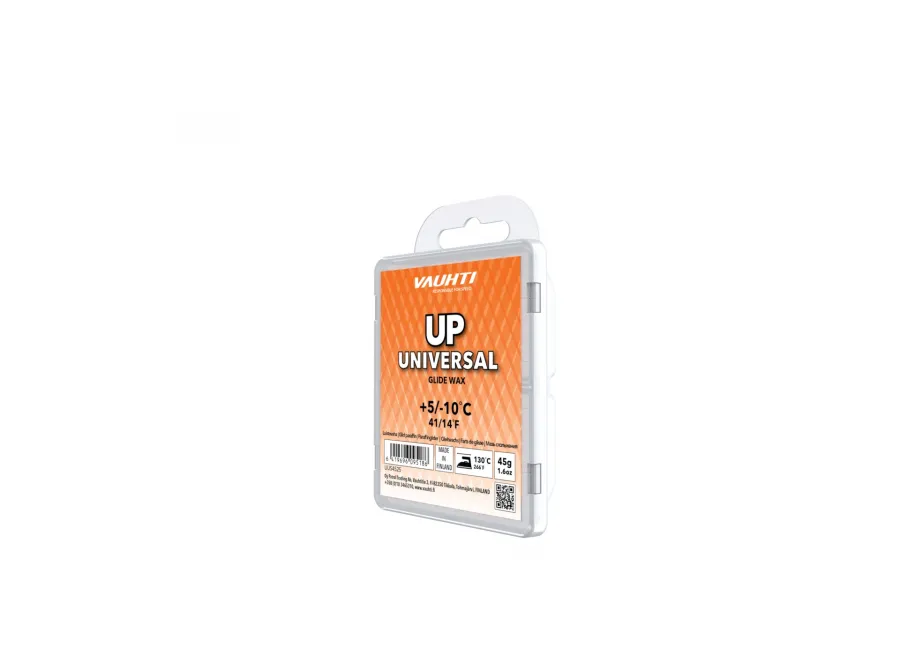 UP UNIVERSAL GLIDE WAX je univerzální vosk určený pro všechny běžkaře, kteří hledají spolehlivý produkt pro různé podmínky. Tento tuhý vosk je ideální pro teplotní rozsah +5 až -10 °C a poskytuje skvělý skluz a dlouhotrvající výkon v různých typech sněhu. S hydrokarbonovými ingrediencemi, zinkovým stearátovým voskem a silikonovým voskem nabízí UP UNIVERSAL GLIDE WAX vynikající výkon a trvanlivost za rozmanitých podmínek. Pro optimální výsledky doporučujeme nanášet vosk při teplotě 130 °C. Skvělá volba pro trénink a závody v různých sněhových podmínkách.