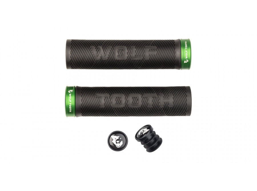 Gripy Wolf Tooth Echo Lock-On Grips jsou vyrobeny pro horskou cyklistiku napříč disciplínami. Gumový materiál je měkký a lepkavý na dotek, zatímco střídavý diagonální vzor rukojeti udržuje ruku jezdce na místě s rukavicemi i bez nich za jakýchkoli podmínek. Gripy jsou vyrobeny z černé lisované pryže a dodávají se s eloxovanými hliníkovými koncovkami, které odpovídají osmi základním barvám ostatních eloxovaných komponentů a doplňků Wolf Tooth.