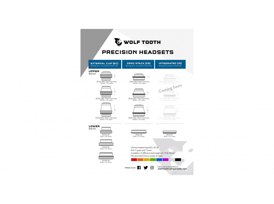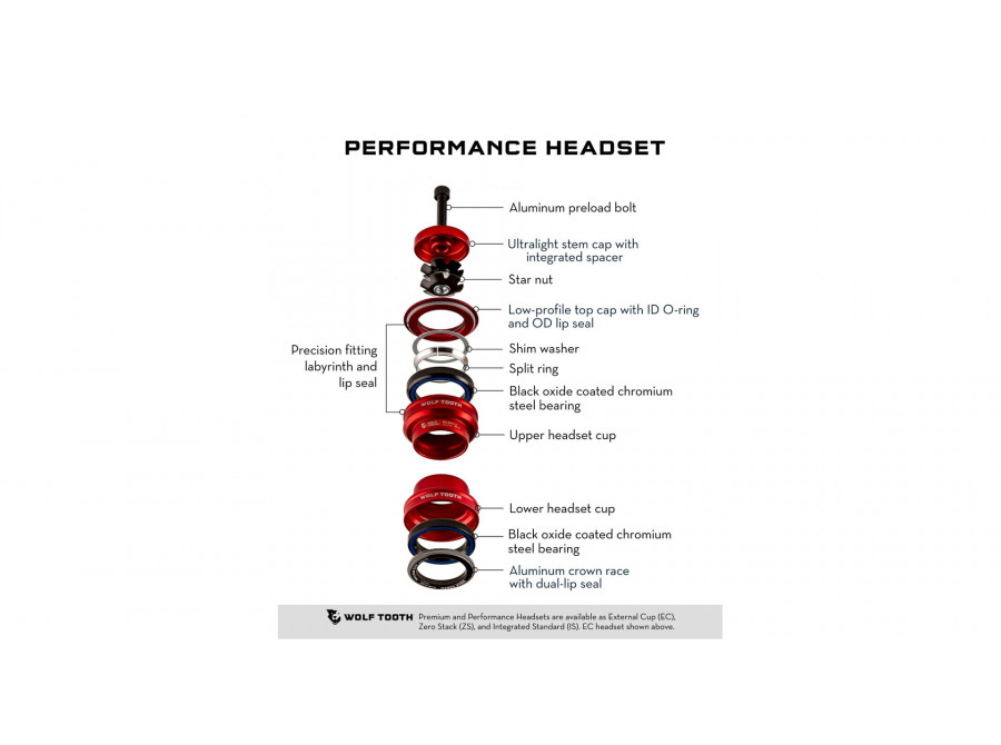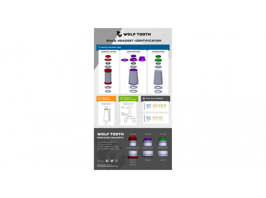 - Vhodné pro jakýkoli rám, který používá ZS (Zero Stack) hlavová složení s vnitřním průměrem hlavové trubky 44 mm nahoře a 56 mm dole.
