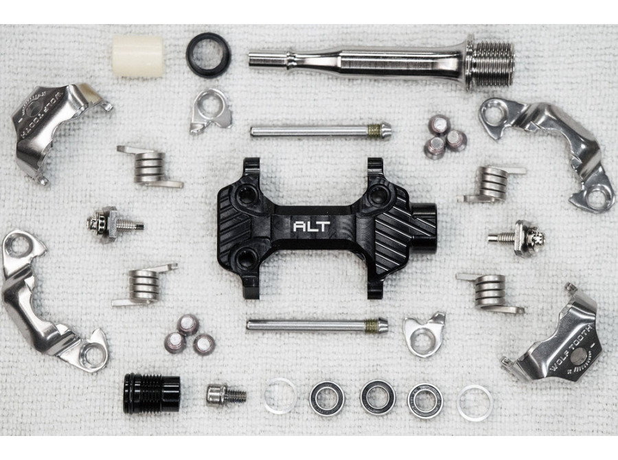 Pedály ALT mají nastavitelný Q faktor v krocích po 4 mm. Uvnitř pedálu se nachází nerezová osa, tři ložiska a dvě podložky. Podložky a ložiska lze přeskupit pro Q faktor 51, 55 nebo 59 mm. To je dostatečně jednoduché, aby to zvládl každý doma. Pro další jemné doladění Q faktoru je k dispozici sada podložek obsahující čtyři 2mm podložky. Stejně jako u většiny komponentů a příslušenství Wolf Tooth jsou náhradní díly a servisní příručky k dispozici prostřednictvím stránek Wolf Tooth Right to Repair.