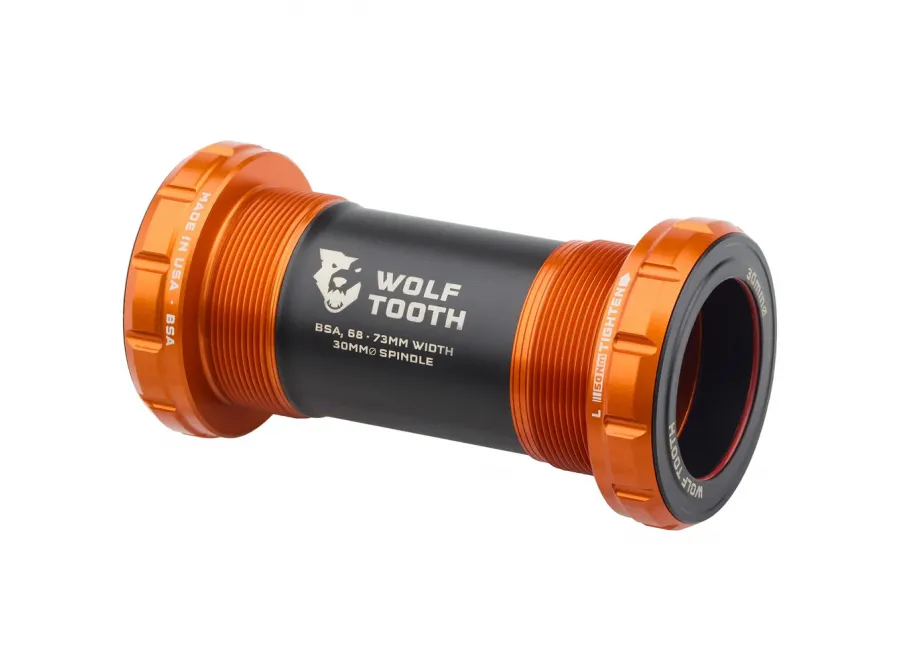 Středová složení Wolf Tooth BSA jsou navržena s důrazem na hladký chod, odolnost, nízkou hmotnost a snadnou servisovatelnost. Náš od základu vyvinutý design využívá vlastní ložiska, těsnění, pouzdra a misky, které eliminují nepříjemné vrzání. Systém kombinuje nejlepší ochranu proti povětrnostním vlivům ve své třídě s optimalizovanou radiální kompresí ložisek a přesným předpětím pro minimální odpor. Složení jsou dostupná pro osy 24 mm (Shimano), 29 mm (DUB) a 30 mm, a to ve čtyřech barvách, které ladí s ostatními doplňky z řady Wolf Tooth Color Shop.
